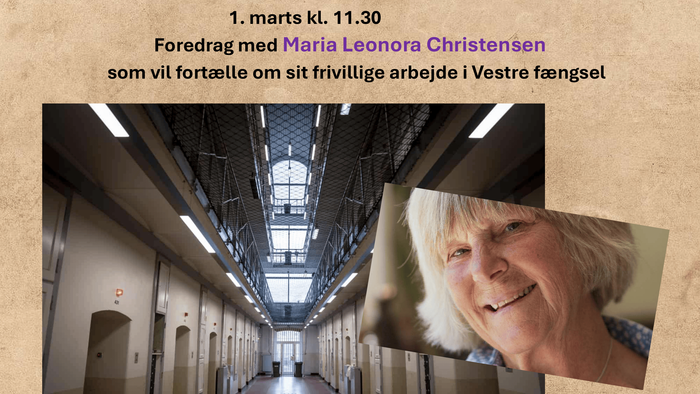 Maria Leonora Christensen vil fortælle om sit frivillige arbejde i Vestre fængsel.